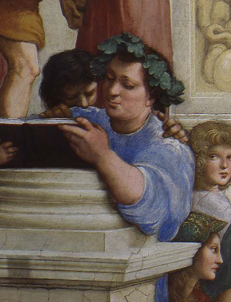 이 작품에는 그림을 그린 라파엘로도 있다. 프톨레마이오스 바로 오른쪽에 살짝 보이는 곱상한 얼굴이다. 잘 생긴 얼굴에 성격도 활발했던 라파엘로는 많은 여성과 염문을 뿌렸던 것으로도 유명하다.