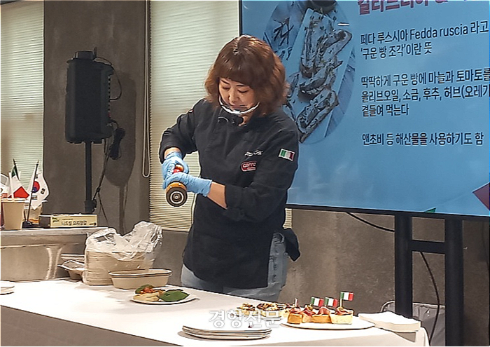 이탈리아 관광청 김보영 소장이 지역별 특징과 식재료에 대해 설명하고 있다