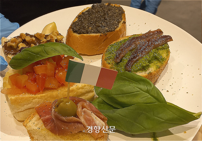 이탈리아무역공사가 매년 개최하고 있는 ‘Bello Bravo Buono’(아름답고 훌륭하고 맛있고)는 이탈리아의 지역별 음식을 알리기 위해 마련된 행사다. 지난 12, 13일 이틀간 서울 신사동 ‘하이스트리트 이탈리아’에서는 이탈리아 음식 중 치즈와 브루스게타에 관한 테이스팅 세미나가 열렸다. 전채요리의 여왕이라 불리는 브루스게타는 얇게 자른 바게트 위에 과일, 치즈, 야채, 소스 등을 얹어 먹는 요리다. 이탈리아 관광청 김보영 소장, 치즈 수입사 이탈리멘티 우재하 부사장의 설명으로 이탈리아 지역별 치즈가 어떻게 다른지 살펴봤다. 또 홍신애 셰프는 지역별로 특징적인 토핑을 사용해 다양한 브루스게타 만들기를 보여줬다.