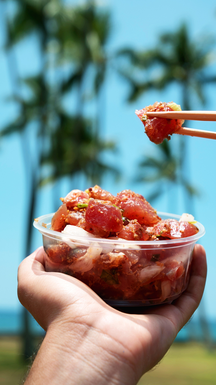 하와이에서 즐기는 참치포케 . 밥을 넣지 않고 참치와 간장소스만으로 버무려 먹는 경우도 많다. 하와이 관광청 제공