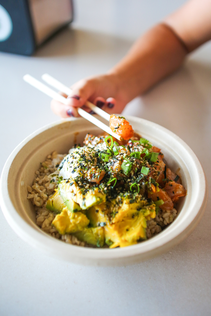 ‘포케’(Poke)는 조각으로 자르다는 뜻의 하와이 단어다. 하와이 지역에 살고 있던 원주민 어부들이 갓 잡은 생선(주로 참치)을 소금과 해초 따위로 양념해 먹던 것이 포케의 시작이었다. 날생선과 고유의 양념을 조합한 간단한 음식은 이후 일본을 비롯해 중국, 한국 등 아시아권 사람들의 이주가 늘어나면서 차츰 변하기 시작했다. 아시아권 이주민들의 입맛에 맞게 간장이나 참기름 등이 핵심 소스로 자리 잡게 됐고 밥이 더해지면서 현재와 같은 형태로 변모한 것이다. 생선 위에 일본식 풋콩(에다마메)이나 아보카도를 토핑으로 얹기도 했고 밥 대신 다른 곡물을 사용해 든든함을 더하기도 했다. 주로 사용했던 생선은 참치로, 아히 소유(참치 간장)포케가 주류를 이뤘다.