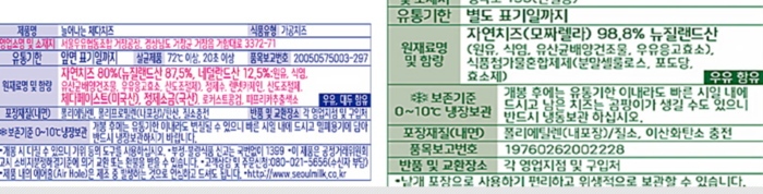 같은 제조업체에서 생산한 제품이나 각기 가공치즈, 자연치즈라고 표기되어 있다