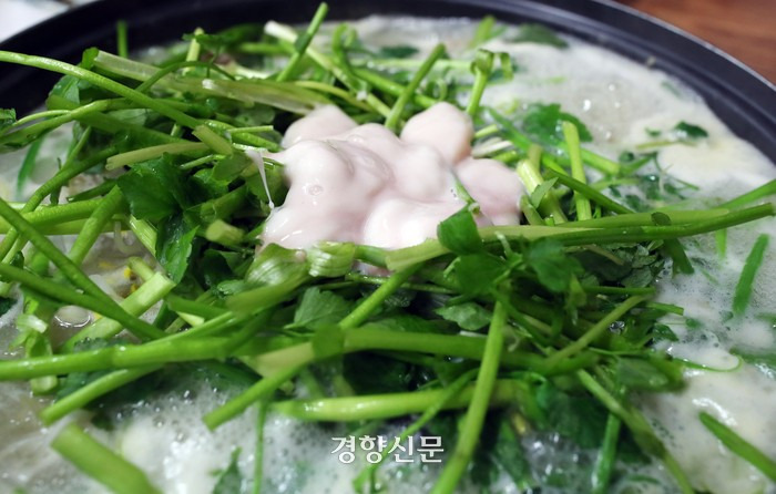 오랜 역사와 고즈넉한 분위기를 가진 나주는 다른 지역과 비교했을 때 유명한 관광도시로 꼽히는 편은 아니다. 이 때문인지 소위 인플루언서 사이에 소문난 전국구 맛집은 적다. 대신 입맛 까다로운 남도에서 현지인들이 즐겨 찾는 식당들을 찾아봤다. 주당들이 입 모아 꼽는 곳은 영산강변에 자리 잡은 영일복집이다. 친정어머니 때부터 대를 이은 60년 된 노포에서 내놓는 복탕은 지금껏 봤던 맑은 국물이 아니라 걸쭉하고 뽀얀 육수였다. 미나리를 듬뿍 넣어 끓어 오른 국물을 한 숟갈 떠넣자 냄비째 들고 마시고 싶어졌다. 찹쌀풀을 넣어 걸쭉한 맛을 낸다고 했다. 한창때를 피해 오후 2시가 넘어 갔는데도 복탕을 즐기려는 사람들로 북적였다. 영산강변 구진포 일대는 예전부터 장어로 유명했다. 일대에 장어구이 전문점들이 몰려 있다.