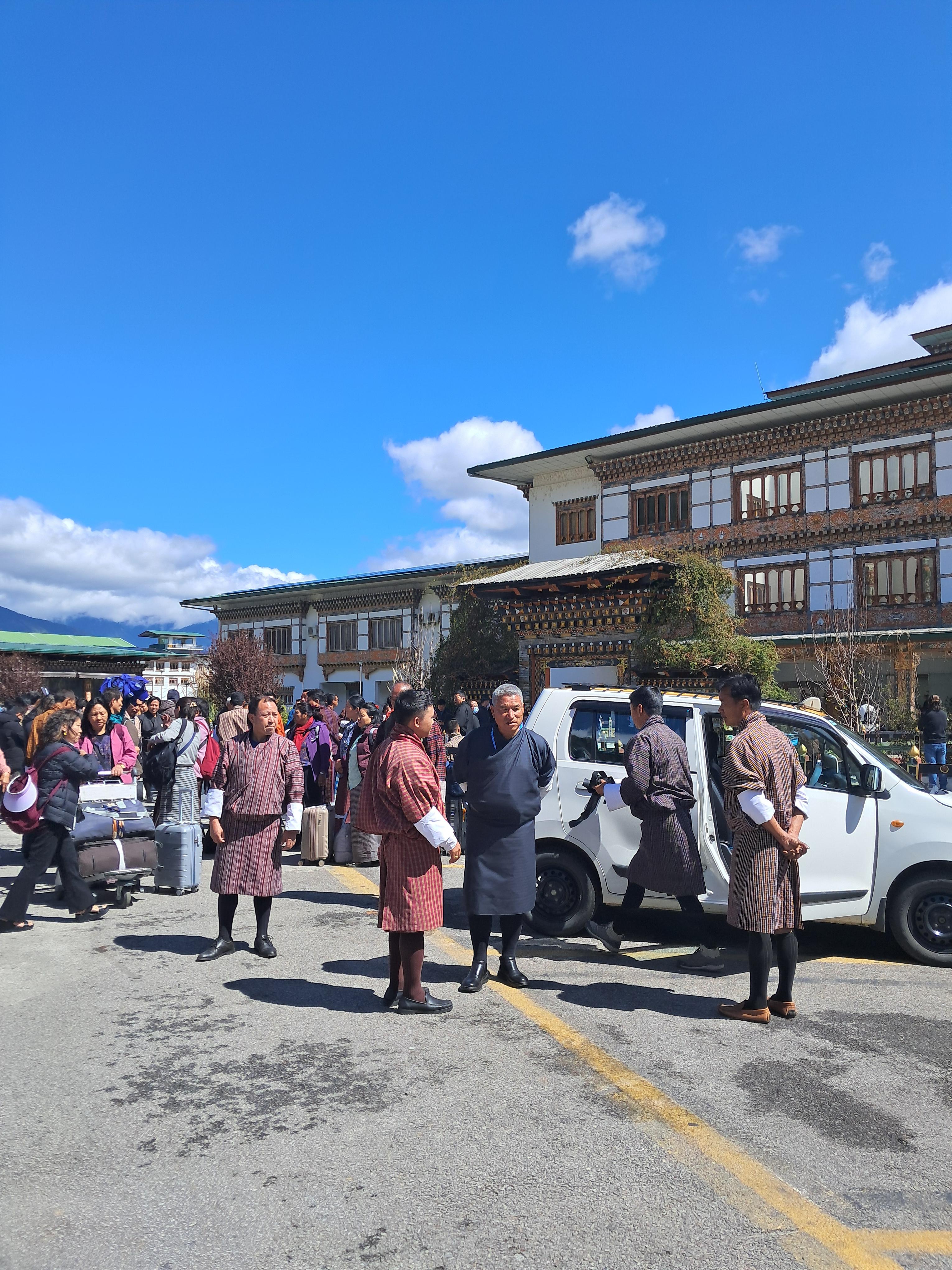 그리고 부탄은 저렇게 가이드를 대동하지 않고서는 여행할 수 없기 때문에 공항 밖에는 자신의 객을 맞는 고 차림의 가이드들이 많이 기다리고 있다.